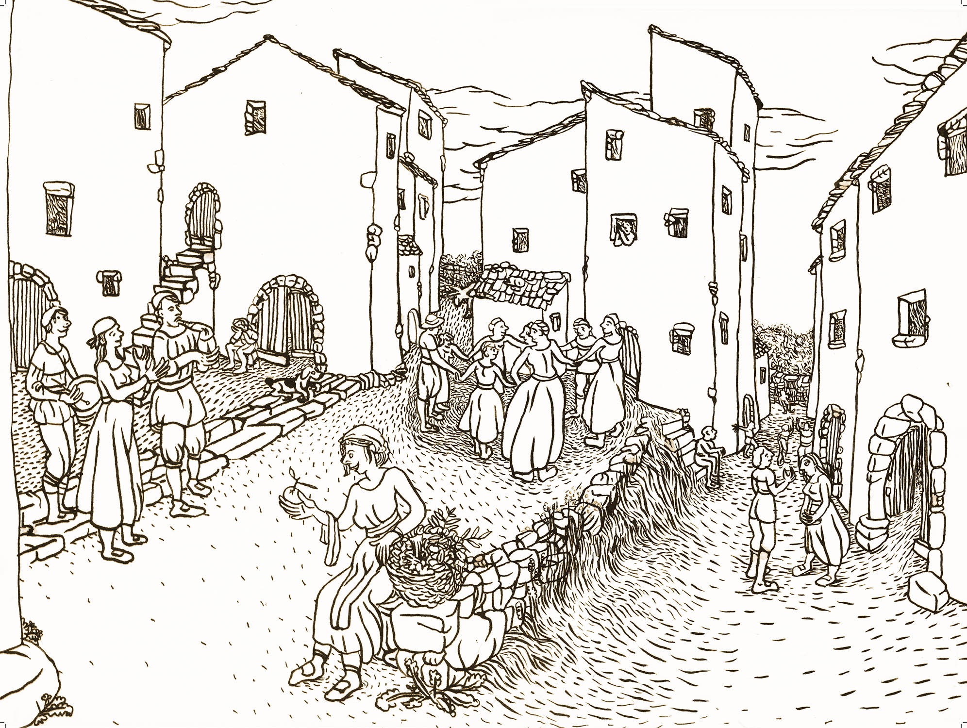 Elles répondent à l’intention de la commune d’aider les visiteurs à imaginer ce que pouvait être le village au Moyen Âge alors qu’il était habité par une population importante sous la protection, et l’autorité, du seigneur.