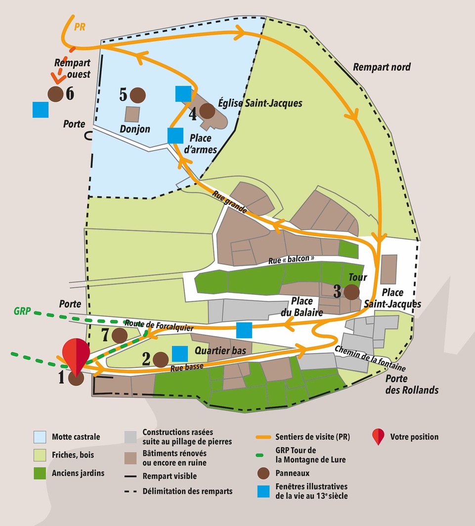 Ce type de propos et son articulation dans le contexte d’une visite sont ce qu’on nomme aujourd’hui, sur des lieux de culture, la « médiation ». C’est une sorte de récit faisant le lien entre l’expérience individuelle du visiteur et la proposition culturelle de l’endroit. Dit plus simplement, il s’agissait en quelque sorte de raconter le vieux Montlaux médiéval dont les pierres, les rues, les murs et les bâtiments à vocations diverses témoignent encore.