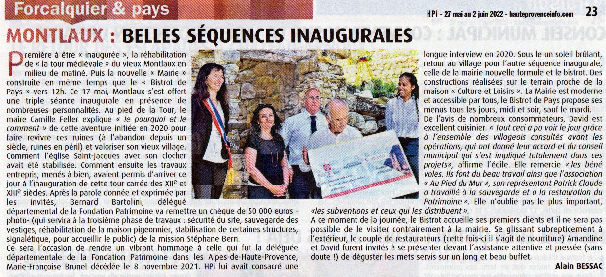 À la suite d’une étude complète menée par un architecte – synthétisée dans un rapport de 117 pages – des travaux d’urgence ont été engagés pour sécuriser les ruines de l’église médiévale. Sa silhouette, haute de quinze mètres, demeure visible depuis les différents hameaux de Montlaux et constitue encore aujourd’hui l’un des repères emblématiques du village.