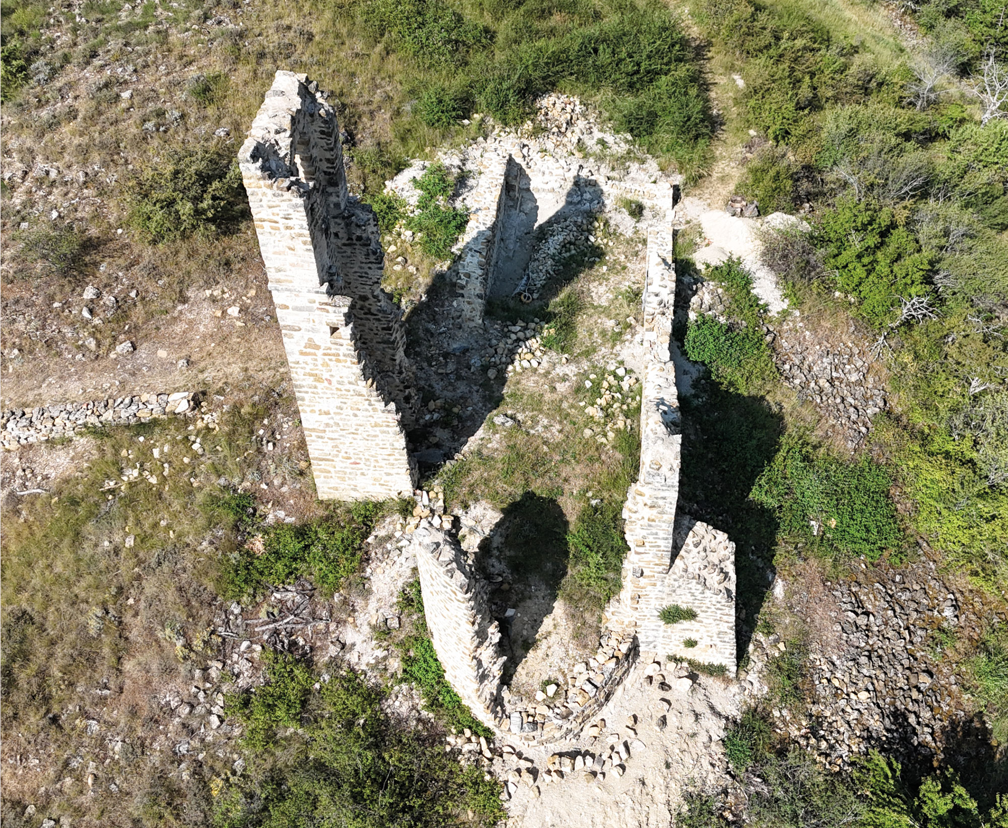 Avant les travaux : la dégradation du bâti était importante et la végétation avait envahi l’église © Patrick Guernier – 2018