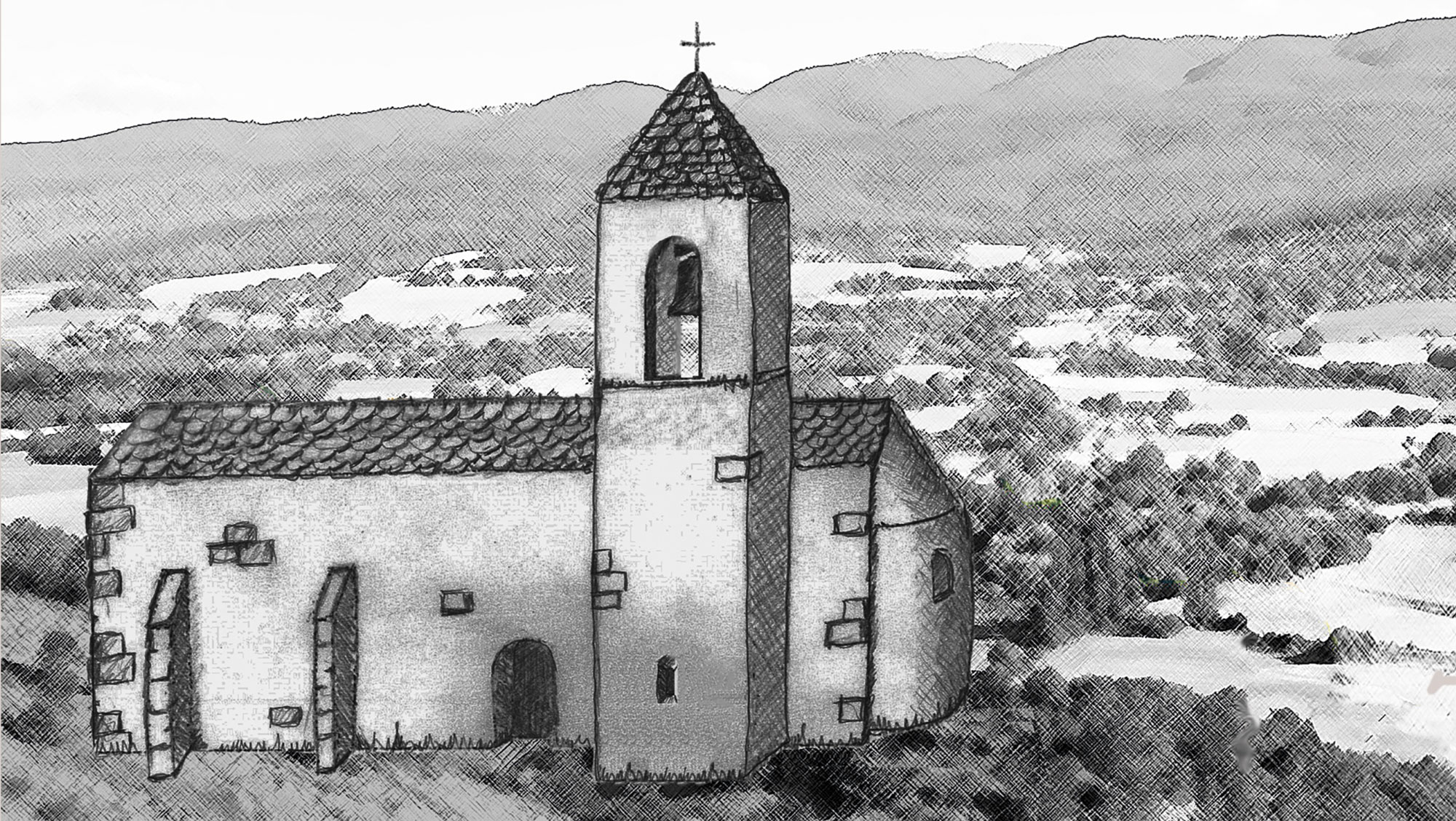 Avant les travaux : la dégradation du bâti était importante et la végétation avait envahi l’église © Patrick Guernier - 2018