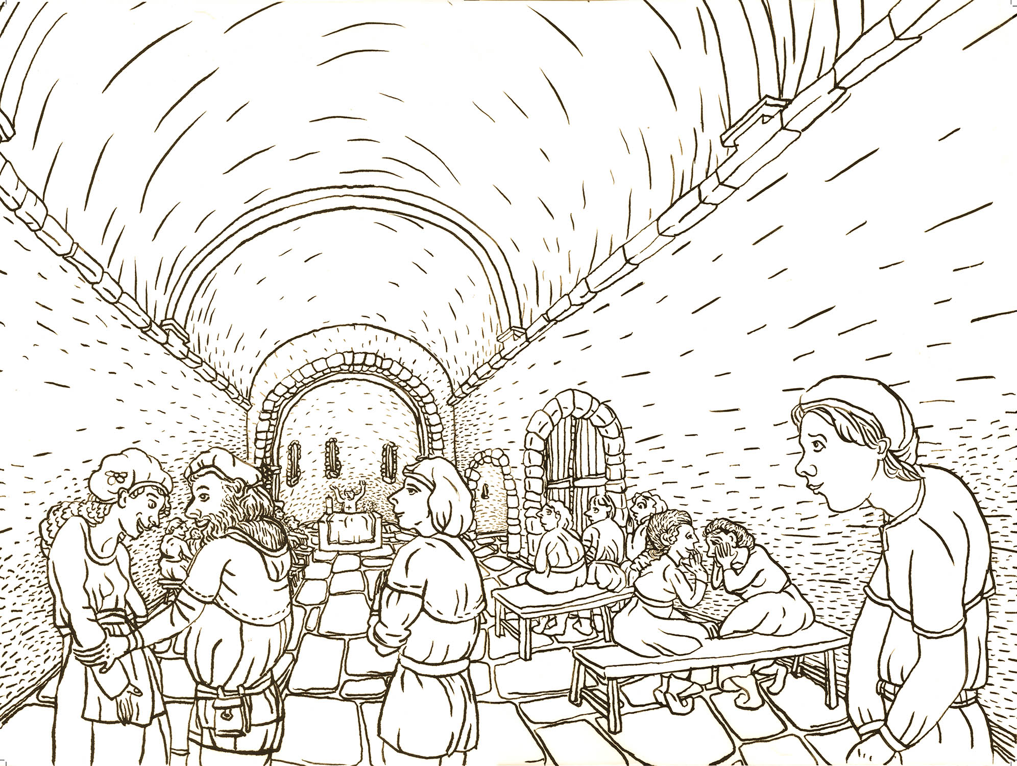 Scène de vie médiévale dans l’église